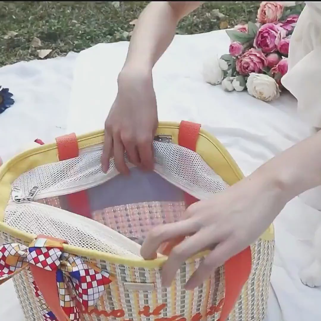 Carry your feline friend in style with this gorgeous woven bag. It features a convenient top opening with zipper closure so you can get your cat in and out easily. The lightweight fabric makes it easy to carry, while the interior is lined with mesh to prevent scratches. It comes with a printed scarf that adds bohemian flair to any outfit. Designed with your cat's safety and comfort in mind, it has a mesh top that allows for ventilation and airflow.